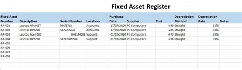 Title: - Fixed Asset Register Fixed Asset Log